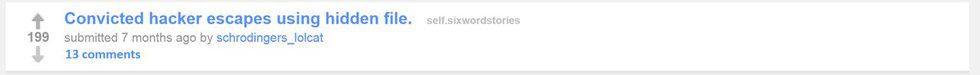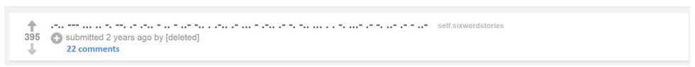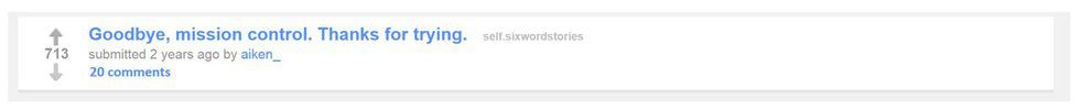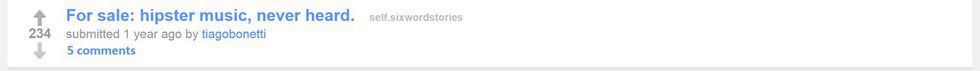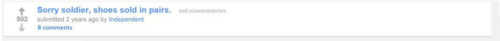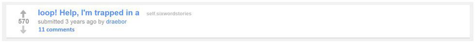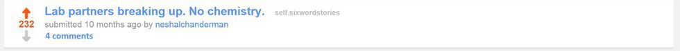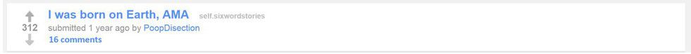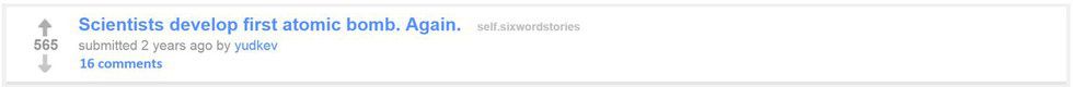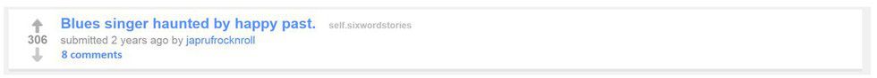 Post a six-word story, or discuss others' submissions in the comments! (Note: The comments don't need to be limited to six words... use lots!)