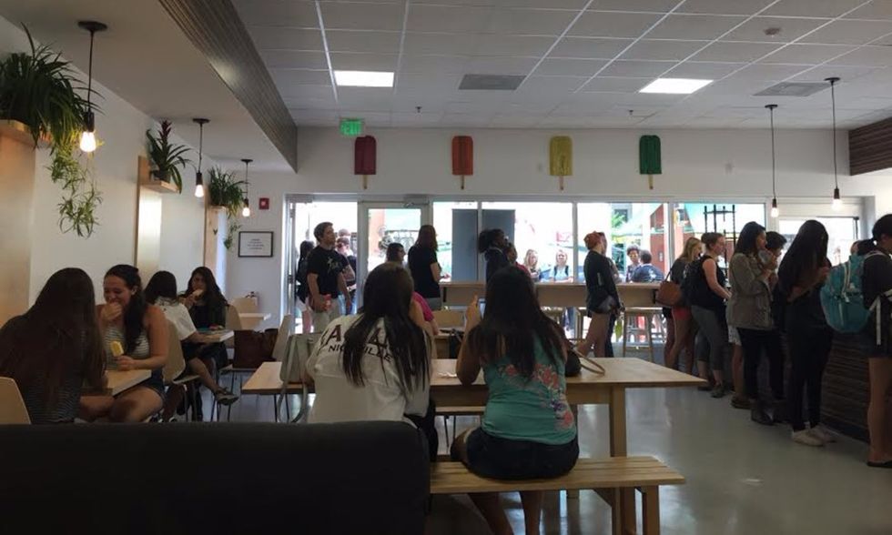 I walked into The Pop Parlour expecting just popsicles. However, I was surprised to find a full espresso menu and that they brew Credo coffee. Heck yeah. I ordered my usual hazelnut latte and was brought a beautiful work of art in a cute mug to my seat on a comfy couch next to a power outlet for my laptop. I wrote most of my project for Scripts Workshop in this space. The atmosphere is calm and light and its location near the CFE Arena is just detached enough from the busy campus life to provide a much needed escape. They also bottle their cold brew and, of course, their popsicles are pretty spectacular. This quickly became my go-spot for meeting friends. (Hey, Annalyse and Courtney!)
