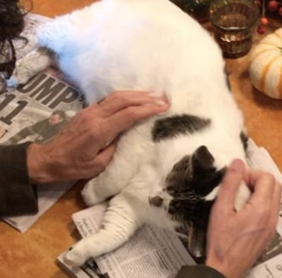 Charlie Boy, a beautiful black and white mutt of a cat, was in an animal shelter for years due to his age (7 years old). Luckily, Beth Stern found him and adopted him four years ago where he became one of the permanent residents of the Stern household.