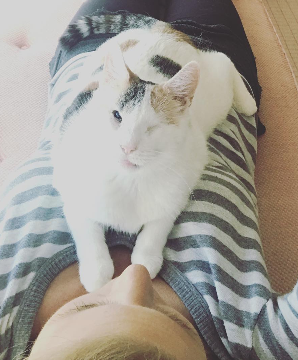 Leela Sophia is another blind kitten who also had to have one of her eyes removed from a previous trauma. Leela Sophia fit in with the other foster kittens, however, one day Walter Stern caught a look at her and hasn’t left her side since. She was adopted by the Sterns this past Valentine’s Day.