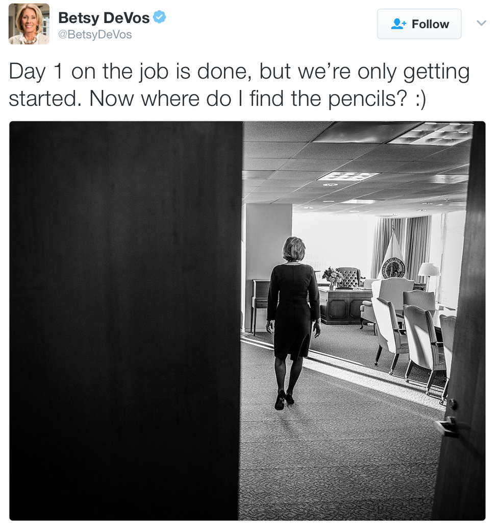DeVos received immense amounts of backlash for this tweet because pencils in the American public school system are not something to joke about. Something as simple as pencils are a luxury to students throughout the country. Teachers purchase school supplies out of their own pockets throughout the school year, and while schools often promise to reimburse them, teachers do not hold their breath. Schools that are fortunate enough to be able to provide supplies, or even expect families to purchase their own supplies, are few and far between.