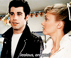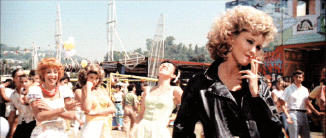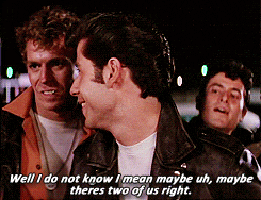 Later, Sandy shows up in all black, a fierce outfit choice, after his first attempt of talking to her to get her back (classic love story) and he's taken back, like “I thought maybe I had lost her forever". After he finally spits some type of compliment out (because lets face it, words are hard sometimes) she says, “Tell me about it, stud". SO FIERCE. *Applauds*