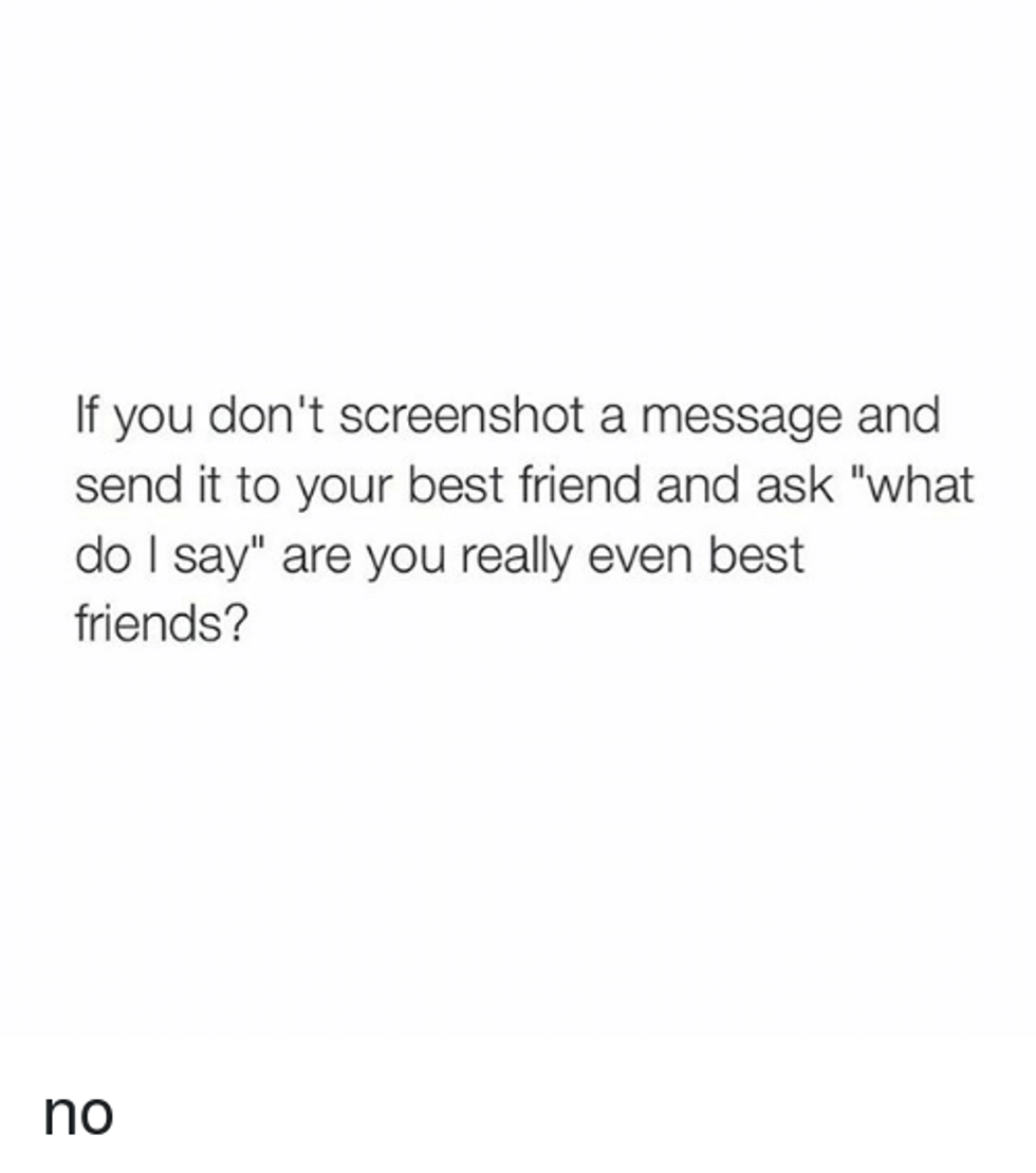Are they fighting with their boyfriend/girlfriend, another friend, or a parent over text? If so, then you better prepare to receive at least 10 screenshots of the fight.