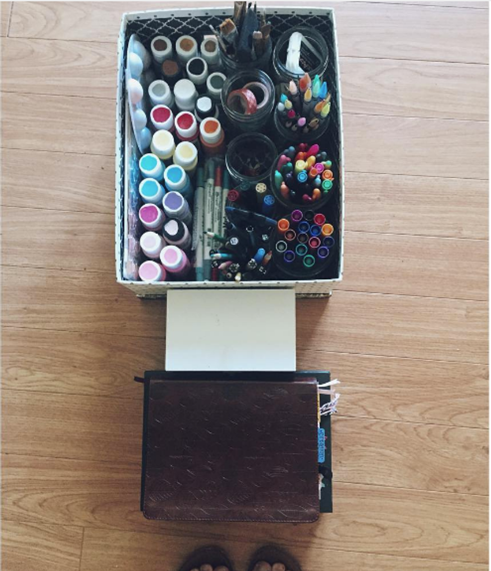 I started off Bible journaling with colored pencils, pens, and markers; I was so