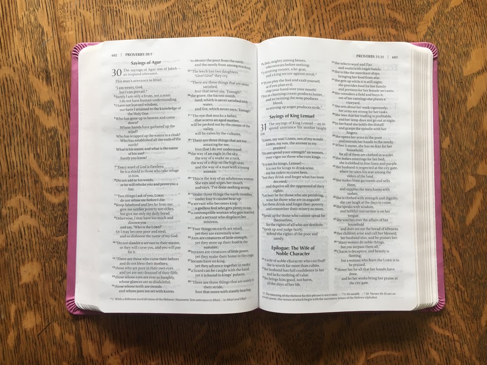 "She is more precious than rubies; nothing you desire can compare with her. Long life is in her right hand; in her left hand are riches and honor. Her ways are pleasant ways, and all her paths are peace. She is a tree of life to those who take hold of her; those who hold her fast will be blessed"