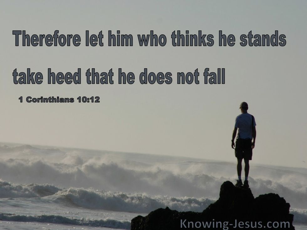 "Therefore let anyone who thinks that he stands take heed lest he fall. No temptation has overtaken you that is not common to man. God is faithful, and he will not let you be tempted beyond your ability, but with the temptation, he will also provide the way of escape, that you may be able to endure it."