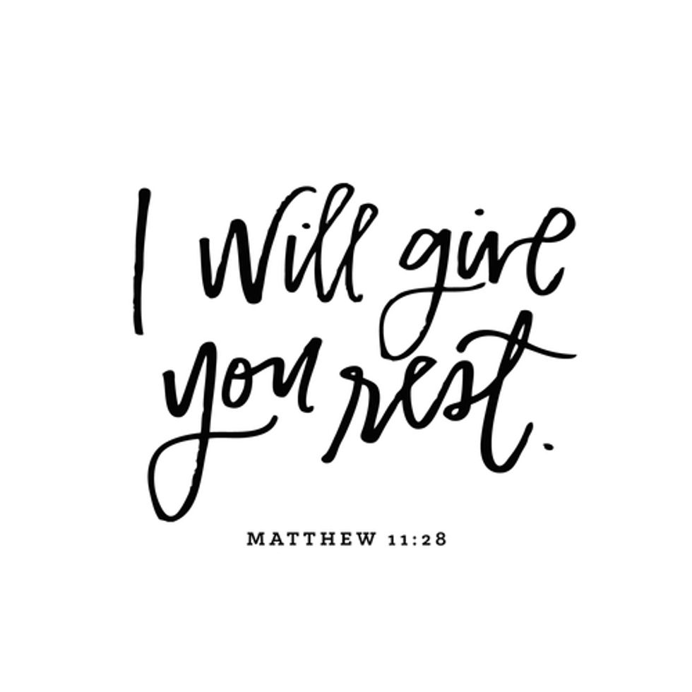"Come to me, all who labor and are heavy laden, and I will give you rest. Take my yoke upon you, and learn from me, for I am gentle and lowly in heart, and you will find rest for your souls. "