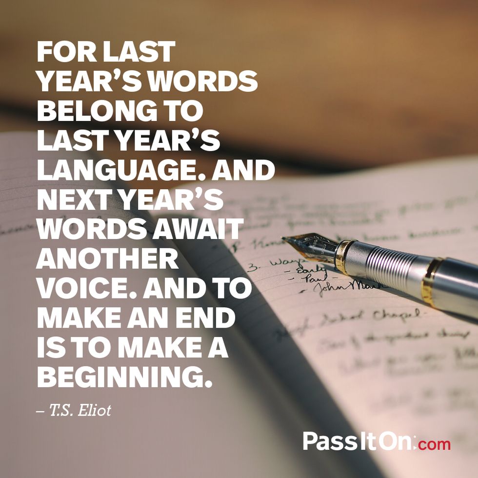 10. "For last year's words belong to last year's language. And next year's words await another voice. And to make an end is to make a beginning." - T.S. Eliot