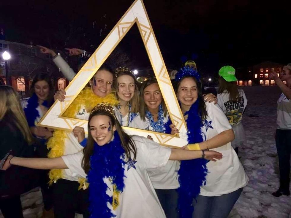 Last week, I wrote about recruitment as told by New Girl but I didn't include bid day since it had not happened yet. BUT... I am now a proud member of the Delta Delta Delta Sorority at Wake. So...here is what bid day was like as told by New Girl...