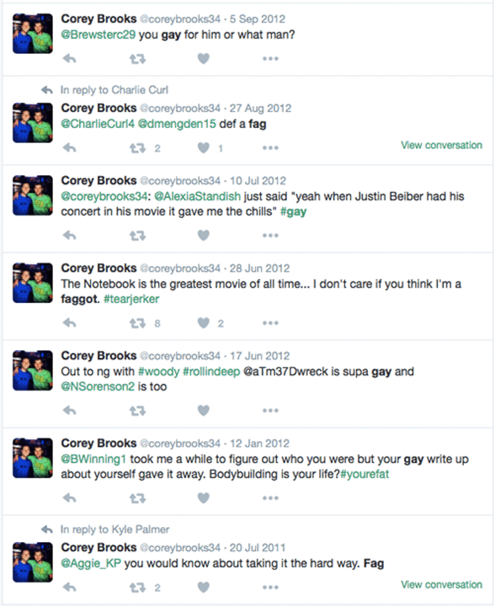 While the whole cast came across as generally likable in their interviews (bar Corey, who many said seemed like a stale piece of bread), it wasn't all smiles as dirt from these contestants was quickly revealed. And by dirt, I mean inconsiderate and offensive stuff that they thought was A-OK to post at the time.