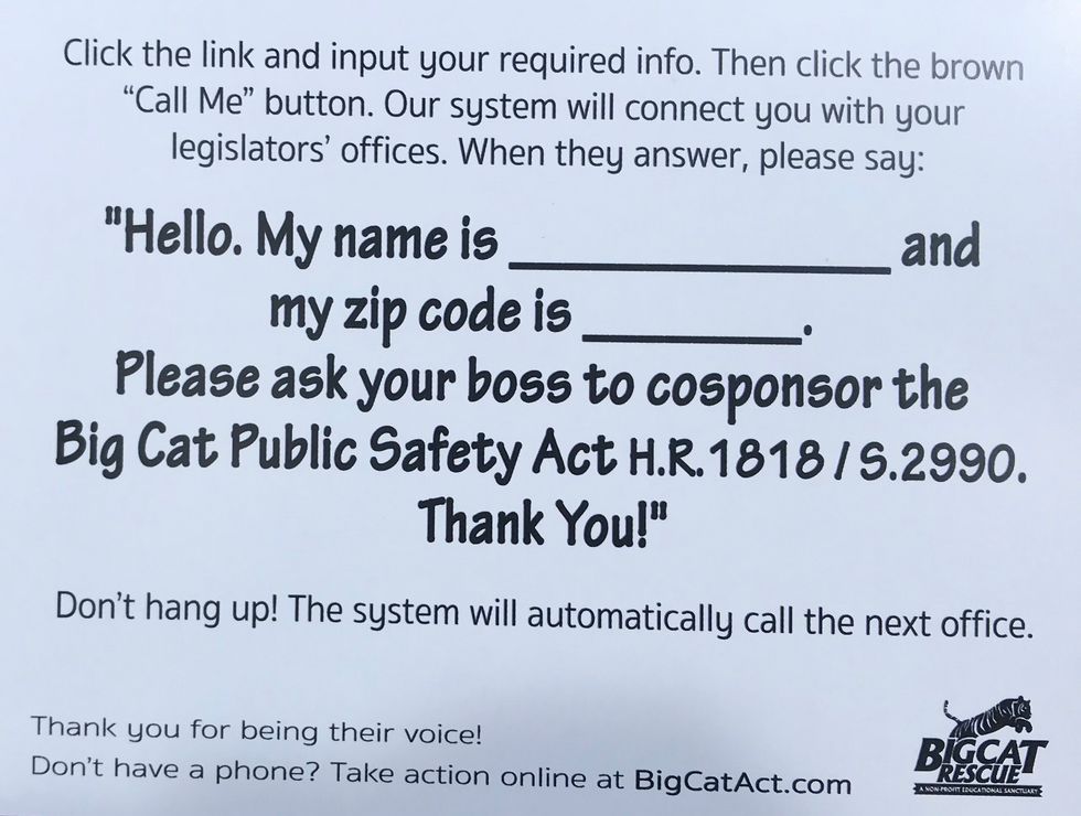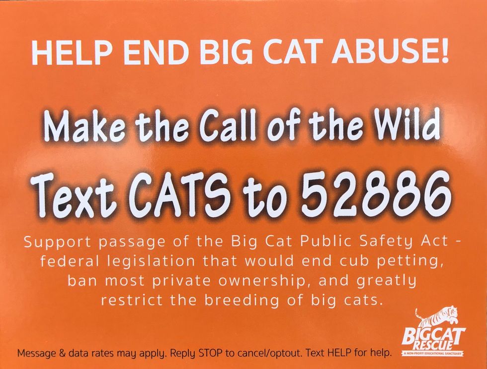 So, if there are about 1,500 tigers in Florida, not to mention lions, leopards, jaguars, and the like, that means there are at least that many, likely many more, living their entire lives in a space hardly big enough to hold them. And, beyond this, many of these animals are being abused in other ways, improperly fed, bred, sold illegally, trafficked as pets or for their fur… and the best way to stop it is to change our laws, something that the Big Cat Rescue is working tirelessly to do.