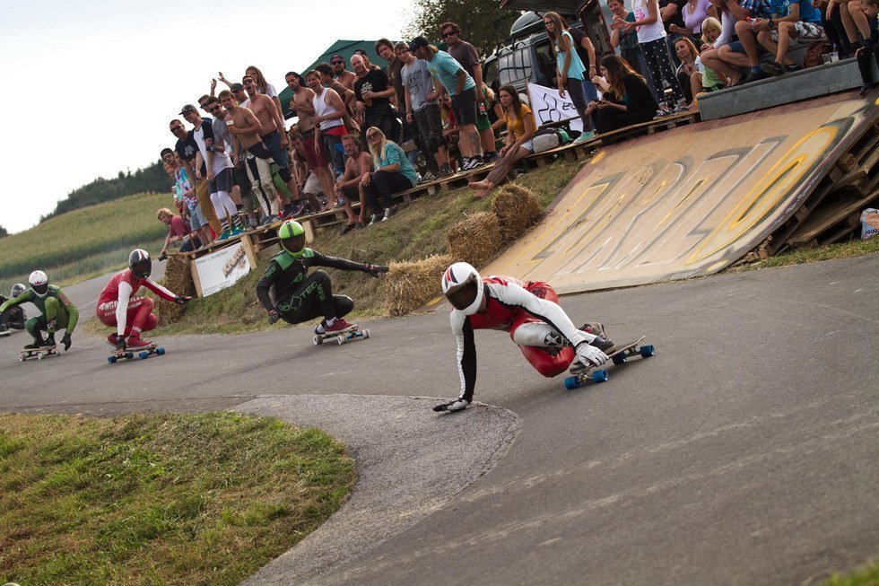 Knowing what we now know about Austria, someone could assume that the Austrian’s lust for extreme, gravity driven sports would result in a long history of downhill skateboarding. I mean, any skater who has ever searched for roads by skewering google earth would look at a topographical map of Austria and easily assume there would be a thriving scene of speed demons trying to bomb every steep and windy road offered to them. Early in the millennium there has been years of IGSA-ran Almabtrieb in Jungholz, IGSA “Hot Heels” races in Kaunertal, and an Austrian Championship series hosted by Luger Alexander “Tiki” Frischauf. On top of this, a simple Youtube search reveals a couple old videos on Youtube displaying an “old school” mountain-skate-rat mentality. Unfortunately these examples of older Austrian Downhill skating hasn’t been widely talked about or word-wide distributed like much of the skating on the US and Canadian West Coast. It seems like for a long time Austrians have left their lemons on the trees, unpicked, while COAST longboarding, Maryhill Ratz, and LA have already been making lemonade for years. Austria has come late to the party. That comes to me as a surprise, but they just might be brewing the best lemonade the skate scene needs.