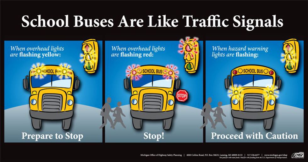 So many people just don’t know how to drive around school buses. It’s not something that’s taught in driver’s education, and if you never completely paid attention to what lights the bus driver was flashing as they stopped, then there would be no way to know when the driver actually opens and closes their doors to allow kids on and off the bus.