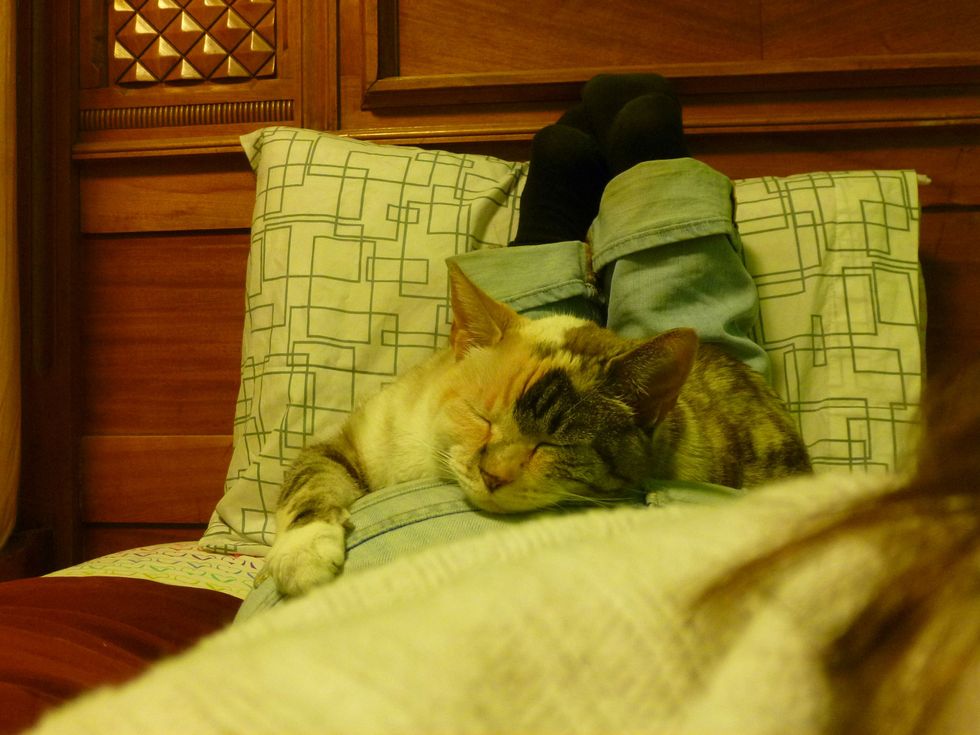 7) Your pets think your backside is the best place to nap.