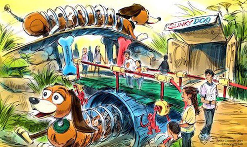 Toy Story Land will be added to Disney Hollywood Studios Park at Disney World. It will include a family-friendly roller coaster that takes you on a thrilling adventure while you're in the back of Slinky Dog, an alien flying saucer ride that spins you around and a 3D interactive ride with fast-paced games.