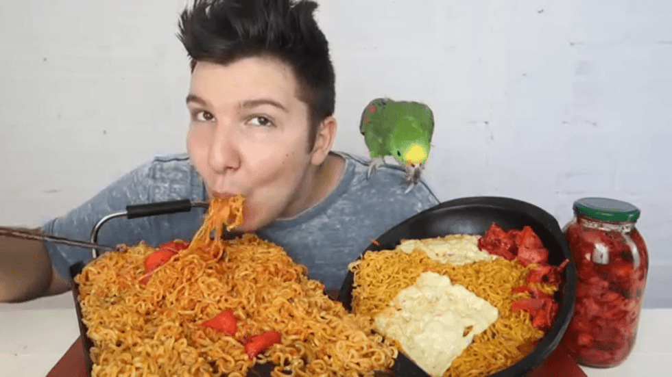 It all started in South Korea. Muk-ja meaning to eat and "bang," meaning to broadcast where combined to make the word we know today as "mukbang" (formally pronounced mokbang). The original mukbang stars, known as Broadcast Jockeys or BJs used their love for eating to entertain their audiences, eating insane amounts of food in the process. The cultural phenomenon started going viral around 2015 and from there, mukbang went global reaching American viewers when a YouTube channel by the name of Fine Brothers Entertainment released a video about mukbangs in the same year. From then on, YouTubers have become their own version of BJs, some building a following solely based on the mukbang phenomenon, and it’s definitely growing.