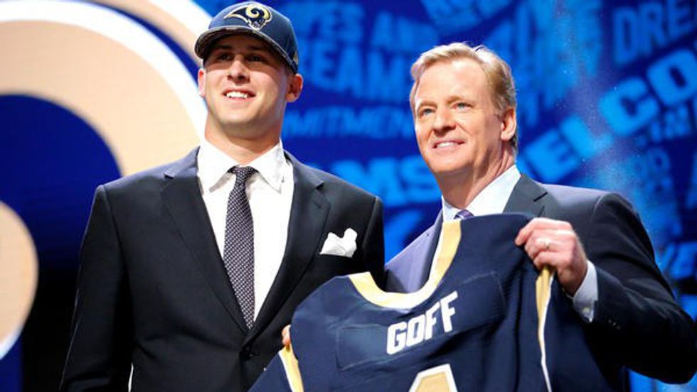 The skinny kid from Cal is the Rams newest gem, picking him first overall in this summer's draft, while giving up many picks to get him. The talk before the draft was whether Goff or Carson Wentz out of North Dakota State, was the top quarterback prospect. Once the Rams traded up there was not much doubt that they were going to select Goff as the story came out only hours after the trade, that Goff would be their selection. At the time of the draft, many experts and plenty of fans were questioning whether Goff was worth the high price the Rams were willing to pay, but in today's NFL, you cannot put a price on the benefits of having a franchise quarterback, and the Rams feel like Goff can fill that role. At the beginning of training camp and throughout the preseason, Goff has struggled. As it is for any rookie QB, the battle of transitioning to the NFL is daunting. Adjusting to NFL speed and playbook may be the most difficult tasks for any rookie in the league. Goff, as seen in the HBO hit series "Hard Knocks," is having difficulty with the play calling as he has never huddled in his football career until his arrival to the Rams. The long, random, terminology of calling a play in the huddle has gotten the best of Goff thus far.