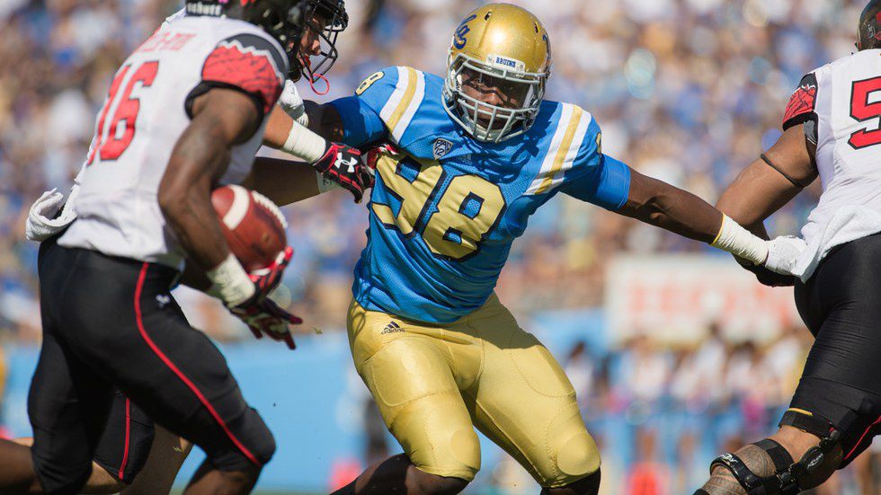 Takkarist McKinley- DE UCLA- Already drawing comparisons to Demarcus Ware, McKinley does one thing, get to the quarterback. An uber athlete, he has an excellent first step and enough strength to impact the opposing running game as well. Like Thomas, he is still considered very raw, and Bill Belichick would be able to work very well with him and develop him into someone like Trey Flowers.