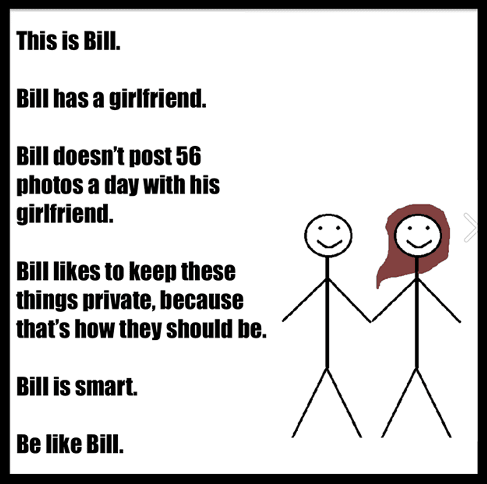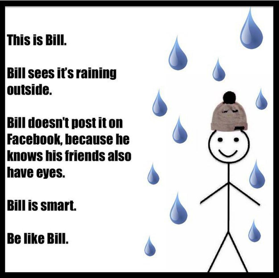 It's one thing to call out people for their bigotry or hatred, but "Be Like Bill" is sorta promoting a kind of hatred. Why are we making everyone self-conscious about their social media habits? What if I want to take a picture of my salad and use #blessed? Why are shaming our Facebook friends?