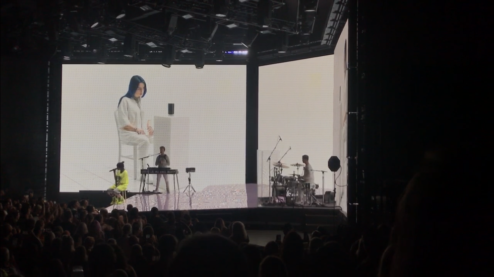 Another thing that shook me was her voice. Not her singing voice but just her normal talking voice. I've watched a few interviews of her and seen multiple videos throughout all social media platforms of her and her voice in the videos sounds deeper. In person, her voice is much more high pitched and raspy which I thought was unique. I was so impressed with the entire production. The lights, Intros, digital screen, and props (like the bed you can see in the cover photo), all added to her performance. I was so inspired by the forms of art she played in the background of her singing. They were all super cool. (i will definitely insert some pics). Most of her backgrounds were meant to be eerie and that's definitely the vibe that Billie gives off, I love it. Besides, basically everything is perfect about the entire show I think the best thing was being able to hear her hit high notes in real life... WOW. I was honestly speeches. Her voice sounds EXACTLY like it would coming out of your little I Phone speaker, it's incredible. I admire her for that. I can't imagine how difficult that must be, I feel like a lot of popular artists don't sound the same life and it can be disappointing at times so hats off to Billie!!!!!