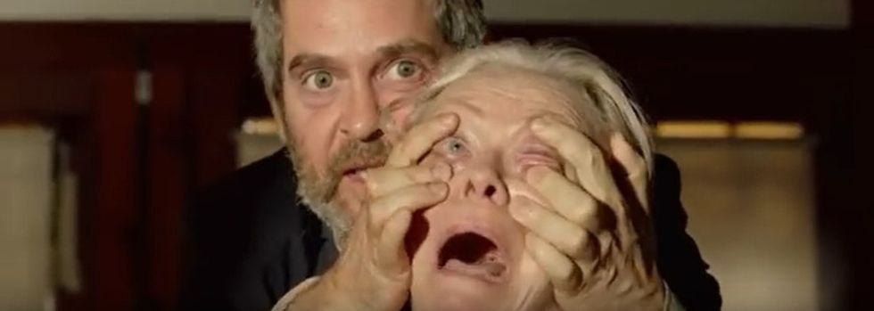 The star of the show is an unknown, invisible monster(s) that compels people to kill themselves as soon as they look at it. We see this during the scene where the very pregnant Malorie struggles to escape the terror and the wife of Douglas (played by John Malkovich) runs outside of a house to help her. She reaches Malorie and immediately stares off into empty space and immediately her eyes change into characteristic bloodshot color changing, says, "Mom?" and runs to the nearby burning car to end her life. Malorie reaches safety and learns that the woman's mother had been dead for years.