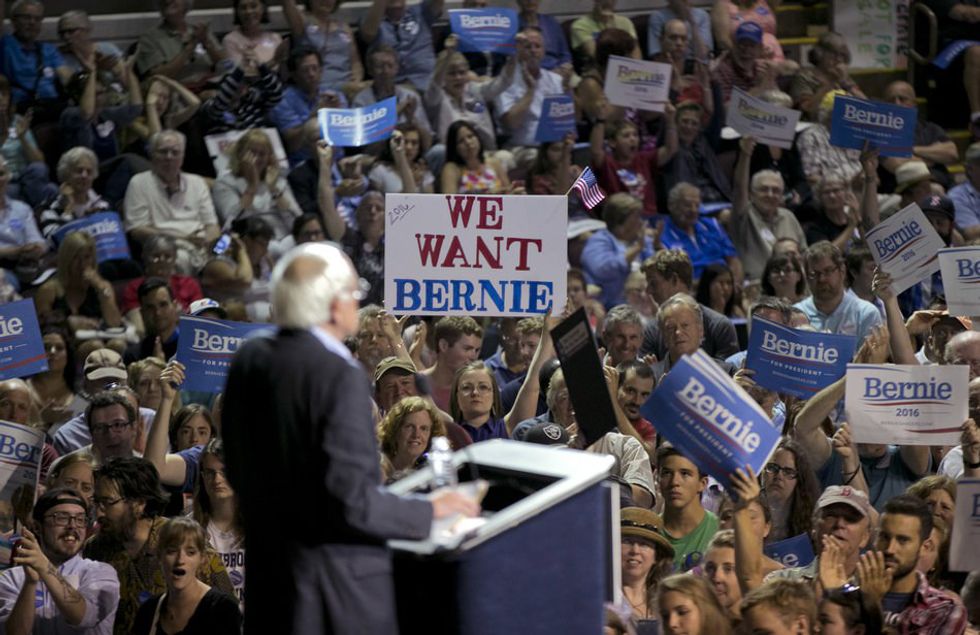 At a rally at the Moda Center in Portland, Oregon on March 25th, a small bird landed on the podium at which the presidential candidate Bernie Sanders was speaking. The crowd went wild, and Sanders let the small bird sit in peace, pausing his speech so he did not bother his new, winged friend. After it flew away, Sanders announced, “I think there may be some symbolism here. That bird is really a dove asking us for world peace.” The audience roared again.