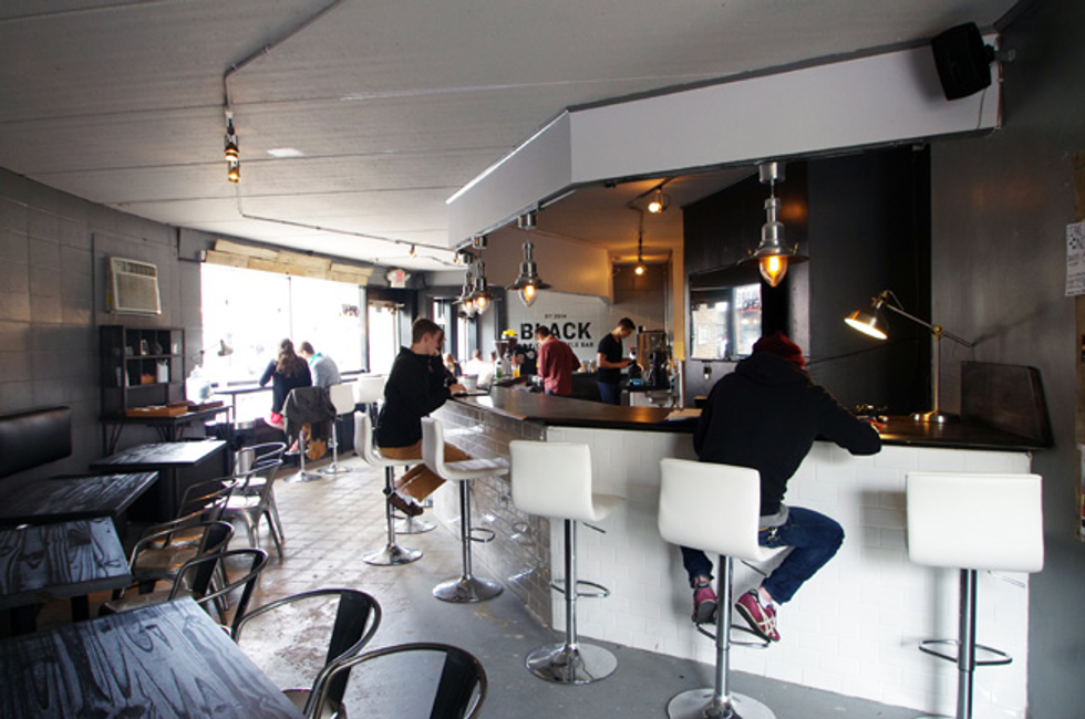 When first walking into Black Coffee and Waffle Bar, your nostrils are overwhelmed by the scent of warm coffee and hints of vanilla. It's the perfect place to go when looking for an out of the ordinary place to eat during your adventurous day in the cities. Giving off an aesthetic vibe, the shop includes tables along with bar styled sitting areas where you can enjoy your waffle and coffee. This is the perfect place to go on a rainy day, whether you're a college student looking for a homey place to do homework, or someone like me who was looking for something new to try out. The combination of black, whites, and greys in the building are oddly satisfying to the eye, and the unique lights create a comforting ambiance.