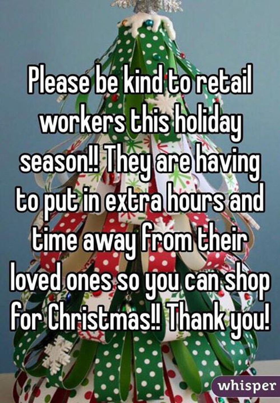 Be kind to the workers you will encounter this Black Thursday/Friday because you are the one choosing to be out - and away from your family - on Black Thursday/Friday they HAVE to be away from their family.