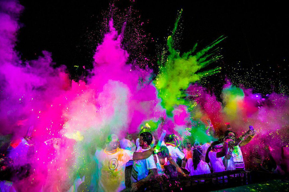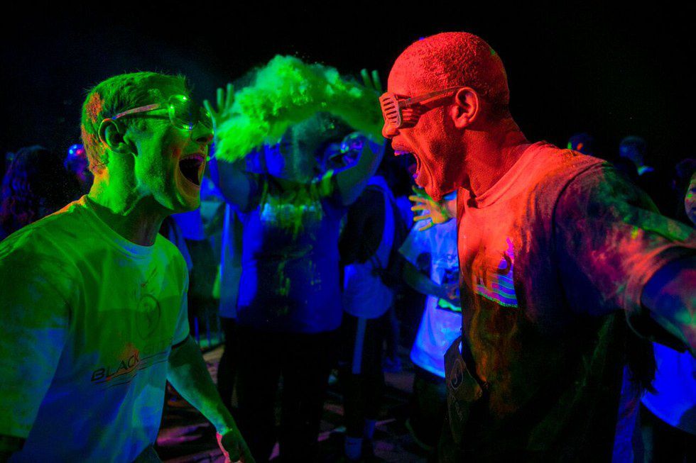 Once you reach the glow stations, the real madness begins. Everyone sort of naturally runs towards the volunteers chest first to get a face full of powder and it's honestly awesome. Sometimes you’ll see the occasionally runner, sprint past the volunteers but swoop down to grab a handful of powder to cover their shirt in. Everyone is genuinely just having a great time at these events.