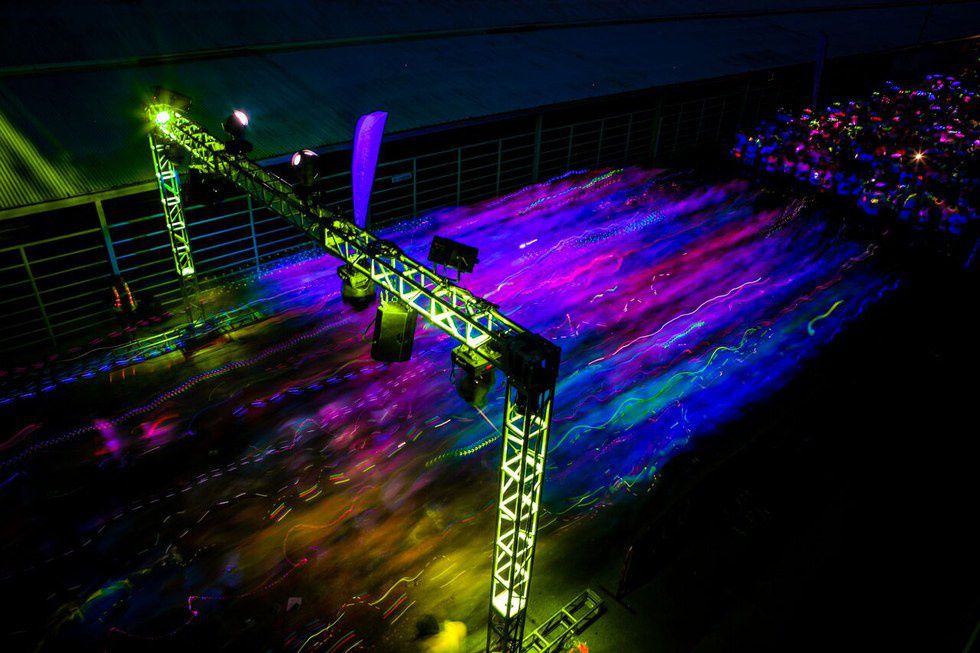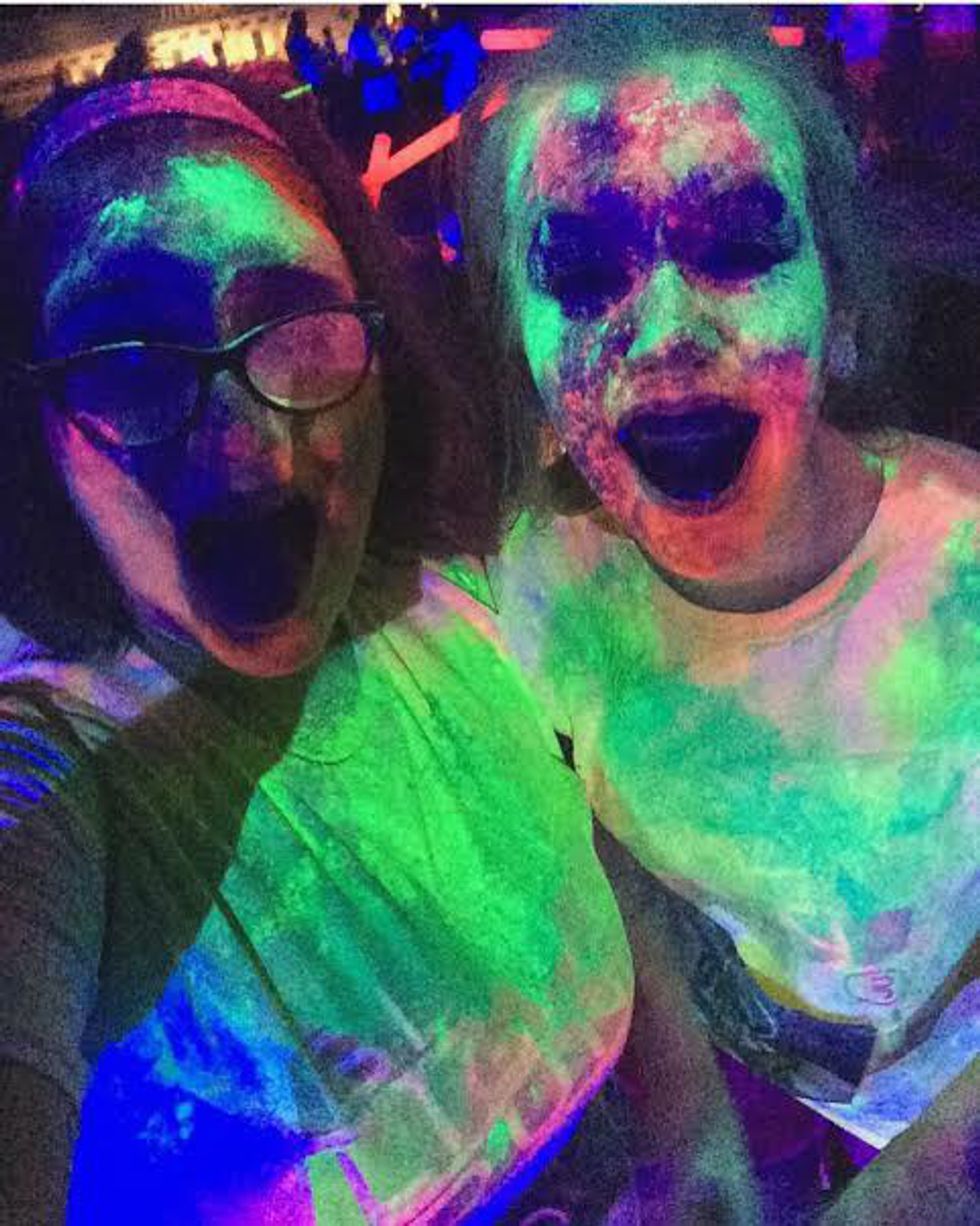 After the pre-party, the race begins around 8:30 p.m. They release everyone in waves of around 20-50 people. A few people run because they got pumped from the music but it is clear once the “race” starts that everyone is there for a good time, not competition. There are about four or five glow stations throughout the course and plenty of black lights to see yourself glow. The website gives off the vibe that there are going to be endless black lights everywhere, but that is not the case. That being said, it also isn't a problem either. Everyone still glows beautifully without wasting unnecessary power on extra lights. Even without 50 million black lights there are still a significant amount around the course. The second a black light comes within sight, you can physically see large groups of people run towards them for selfies and the awe of the glow.