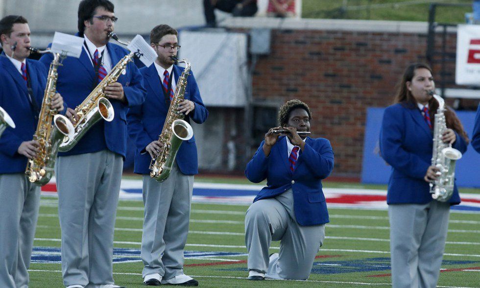 The college marching band world was somewhat shaken this past weekend when five members of the Southern Methodist University Mustang Band took a knee during the national anthem at the home football game against Texas Christian University. This peaceful protest follows a serious of similar protests made by college and professional football players, cheerleaders, and fans across the country, but this is the first case of band members participating in the movement. This provides a different context and has colored the responses of people across the country (especially fellow musicians). The protest also took place at a game which was dedicated to the Dallas first responders who have recently died in the line of duty, most notably the five officers who were shot down following a peaceful Black Lives Matter movement in early July. This further complicates many people's reactions to the protest. I took the opportunity to speak with several members of the band as well as an organizer of the protest in order to gain a better understanding of the context and to give them an opportunity to voice their thoughts and opinions.
