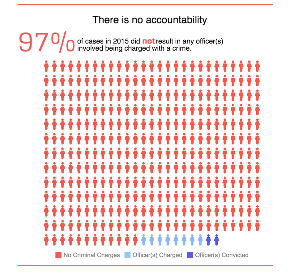 So why exactly do we need this movement? According to data reported by police departments as mandated by the Death in Custody Reporting Act of 2013, unarmed blacks are killed by police five times more than unarmed whites are. Furthermore, “only 10 of the 102 cases in 2015 where an unarmed black person was killed by police resulted in officer(s) being charged with a crime, and only 2 of these deaths (Matthew Ajibade and Eric Harris) resulted in convictions of officers involved. Only 1 of 2 officers convicted for their involvement in Matthew Ajibade's death received jail time. He was sentenced to 1 year in jail and allowed to serve this time exclusively on weekends. Deputy Bates, who killed Eric Harris, will be sentenced May 31.” It is this unaccountability that is why the Black Lives Matter Movement started.