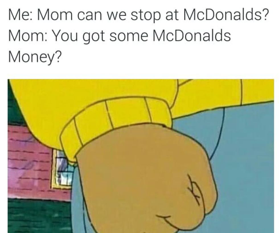 It didn't matter if you were 4 or 14, if you asked to go to McDonald's, this was the response. Now, we all know your mom knew dang on well you didn't have any kind of money because you were an unemployed child but that didn't stop her from asking. This was the long version of "no" meant to put you in your place AND shut you up. It worked.