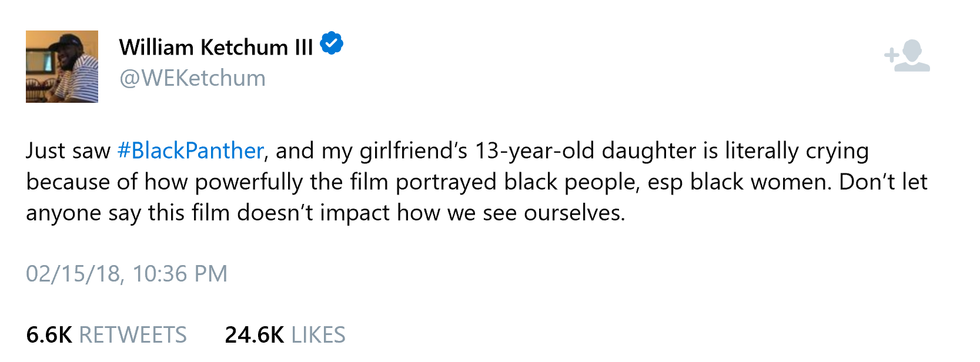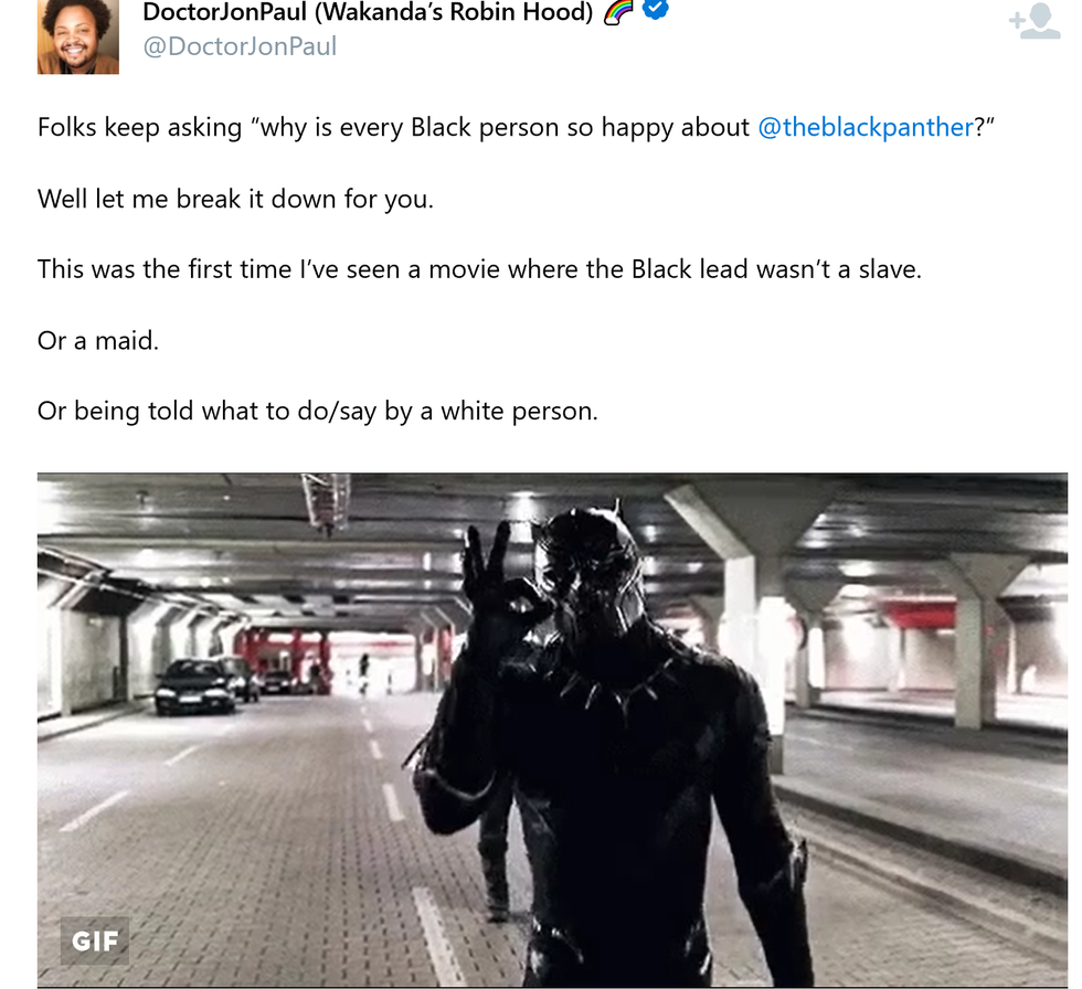 This is something the black community can see themselves in, where the characters aren’t the sidekicks, slaves or criminals, or any other stereotypical role. The characters are kings, queens, princesses, warriors, spies, and geniuses, with capabilities beyond what is humanly capable. 99.9% of the cast is made up of actors and actresses of African descent, which is a huge and crucial step in the right direction. It’s important for young black children to understand that they matter, and they have endless roles they get to choose from to be in life. This movie gives them the ability to look up at the big screen, see themselves, and dream to their heart’s content. The movie also highlights the black lives movement and furthers the question on whose responsibility it is to help rid the racial oppression so many face today. Erik Killmonger points blame to Wakanda, claiming the country sits in comfort while people just like them are being killed and incarcerated. He is furious that they are more than capable of doing something about helping those dealing with these systematic inequalities. In a society full of prejudice and hate, the privileged must recognize that their ability to encourage conversations about black lives. We must discuss how the portrayals black people see in the media affects how the world sees them, how it affects the way they internalize those representations, and how they must live their life. People don’t just want a platform to talk about their culture and people, they need it. Black Panther is just the beginning.