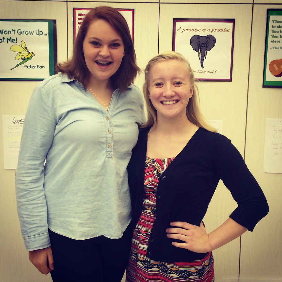 Flash forward to Senior year of high school. In my choir class, we always celebrated birthdays. My sworn enemy all through elementary school, middle, and high school and I had conveniently shared a birthday. We were all friends in that class so I didn't really care too much at that point in my life. So we decided to take a picture together.