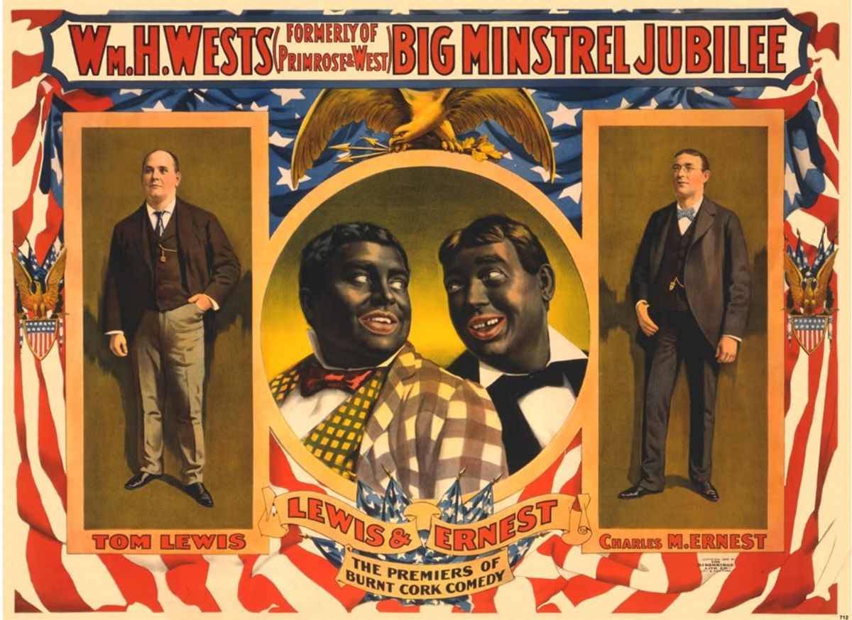 Blackface first began in the 1820s at the start of the era of minstrel shows. Minstrel shows were shows put on by white people wearing blackface and consisted of comedy skits, dancing and music. They usually portrayed blacks as lazy, dim-witted, buffoonish, superstitious and musical. As minstrel shows gained increased popularity over the course of the 19th century, the portrayal of blacks in these shows caused Americans to form distinct stereotypes about African Americans and most people expected blacks to conform to at least one of these stereotypes. These include the “mammy,” the motherly figure who was the core of plantation families; the “dandy,” who was a northern black man who attempted to mimic white, upper-class dress and speech to no avail; and the “Buck,” a large black man who is proud, sometimes menacing, and usually chases after white women. Makeup for blackface usually consisted of a layer of burnt cork over cocoa butter (substituted with black grease paint in later years) and red or white lips painted around their mouths. Costumes were gaudy combinations of formal wear and performers usually spoke in a “plantation” dialect. Entertainment included imitating black music and dance as well as a variety of jokes, skits and songs that were based on stereotypes of black slaves. In early years, minstrel shows were used to romanticize slavery and portrayed slaves as simple and cheerful, always ready to please their master. Overtime, they became a source of cheap entertainment at the expense of black people.