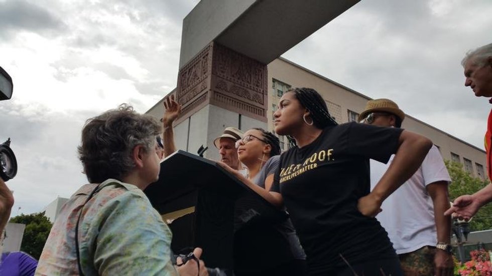 The two main protesters, Marissa Janae Johnson and Mara Jacqeline Willaford, the co-founders of the chapter, were met with loud booing and shouts of “Get off the stage!” from audience members who had waited over an hour for Sanders to speak. When Johnson finally received the microphone from one of Sanders’ aides, she said, "I was going to tell Bernie how racist this city is, filled with its progressives, but you already did it for me, thank you.”