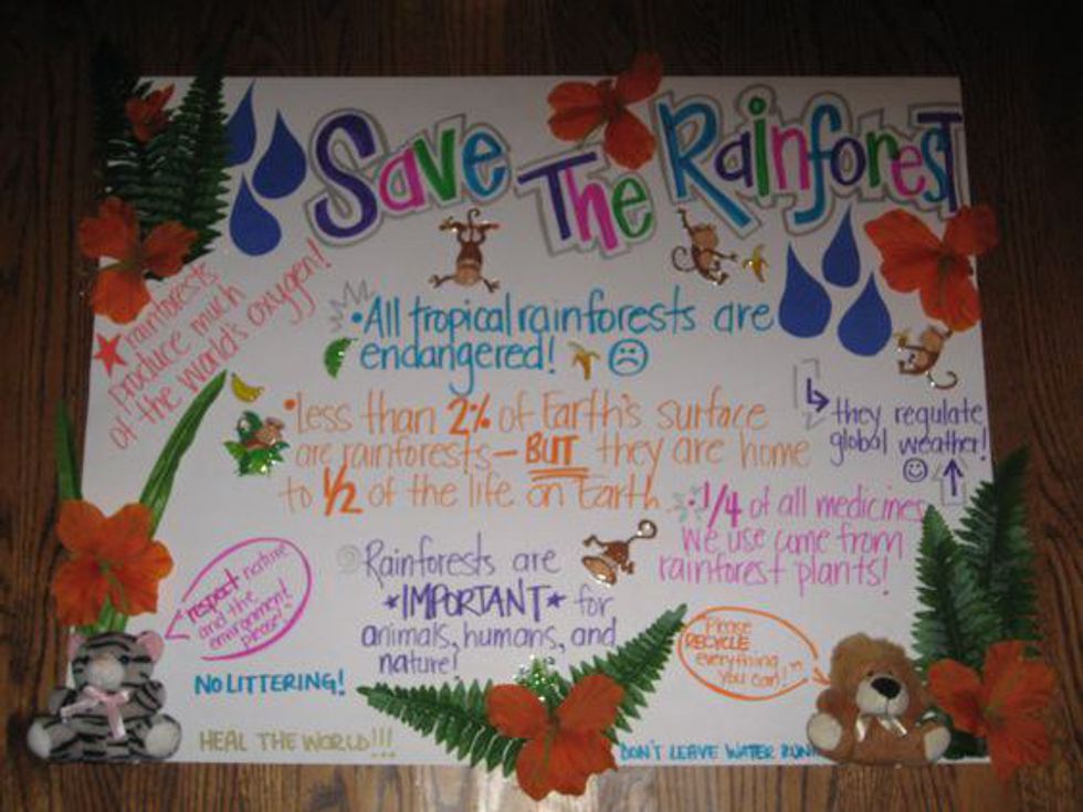 A group is hoping to spread awareness of endangered rain forests and they have this sign. They're spreading knowledge and hoping to get more people on board to help save the rain forests. An angry man comes up and said, "Well, don't you think that ALL forests matter!?"