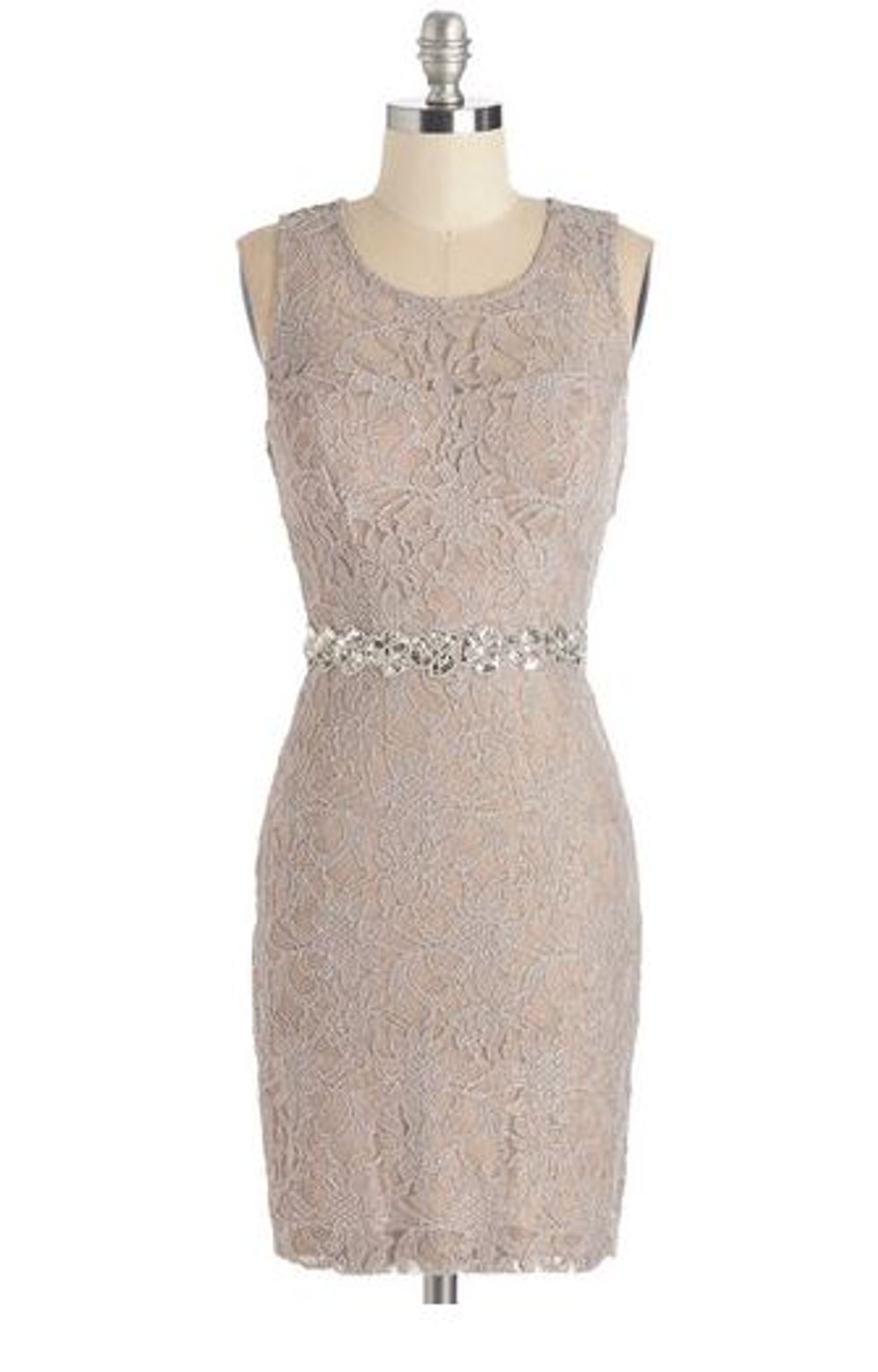 There is nothing wrong with adding glitz to your style, especially in a poised design. Try adding silver accessories, like necklaces and belts, to show off your assets.