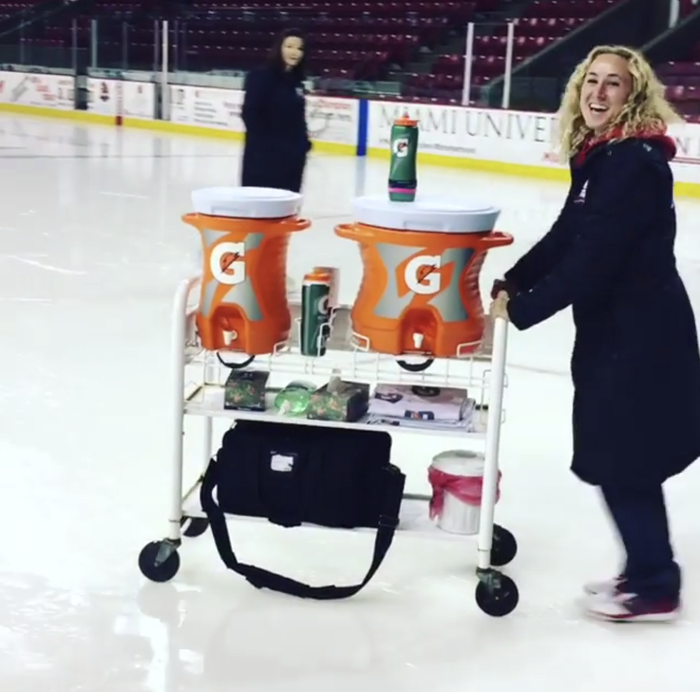 Our AT, Polly, is hands down the best AT in the world. For starters, she's an amazing person with the best laugh. She is always smiling and has a pretty great sense of humor. Polly has cultivated the training room into a safe place. She gets to the rink before any of us and stays well after practice, usually past when we have all left for the day. She also puts up with over 40 female athletes, which is not always an easy task to face.
