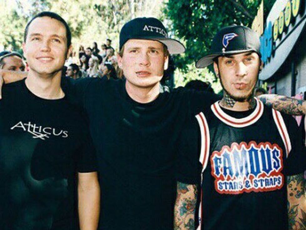 (Pictured: Hoppus on left, DeLonge on right, Barker in back)