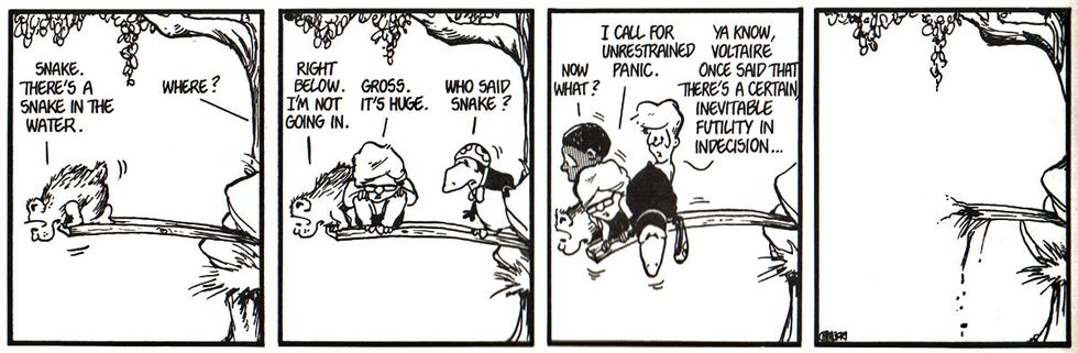 In the eighties, "Bloom County" had distinguished company: the equally revered strips, "Calvin and Hobbes," "The Far Side," and "Doonesbury" all had something to say on the state of affairs. In the twenty-first century, the mantle of political satirizer-in-chief has belonged in equal parts to comedian-hosts like David Letterman, Jon Stewart and Stephen Colbert. Meanwhile, Letterman has retired, "The Colbert Report" left the air in December 2014 so Colbert could replace Letterman, and Stewart will depart "The Daily Show" on Aug. 6. The return of "Bloom County" helps to fill the vacuum left behind.