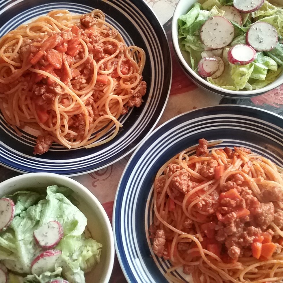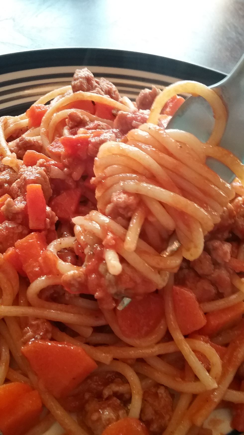 Usually, there aren't any recipes to follow when I'm throwing together a meal. I just kind of go with the flow, most days, or I work from memory to create favorites that I've already made dozens of times. So, when Spaghetti Saturday came around, I got to assist my sweetie whenever he needed a third (or fourth) hand. And, let me tell you, out of all of the things we unpacked from our Blue Apron box, I never considered that the chance to cook together would be one of them.With the illustrated instructions, it was easy to stay on the same page and, for me, it was really fun to be the sous chef for a change. My hubby did an amazing job and produced a fantastic bolognese, but my favorite part of the meal was getting to work together as a team as I followed his lead in the kitchen. At the end, we both had something to be proud of.