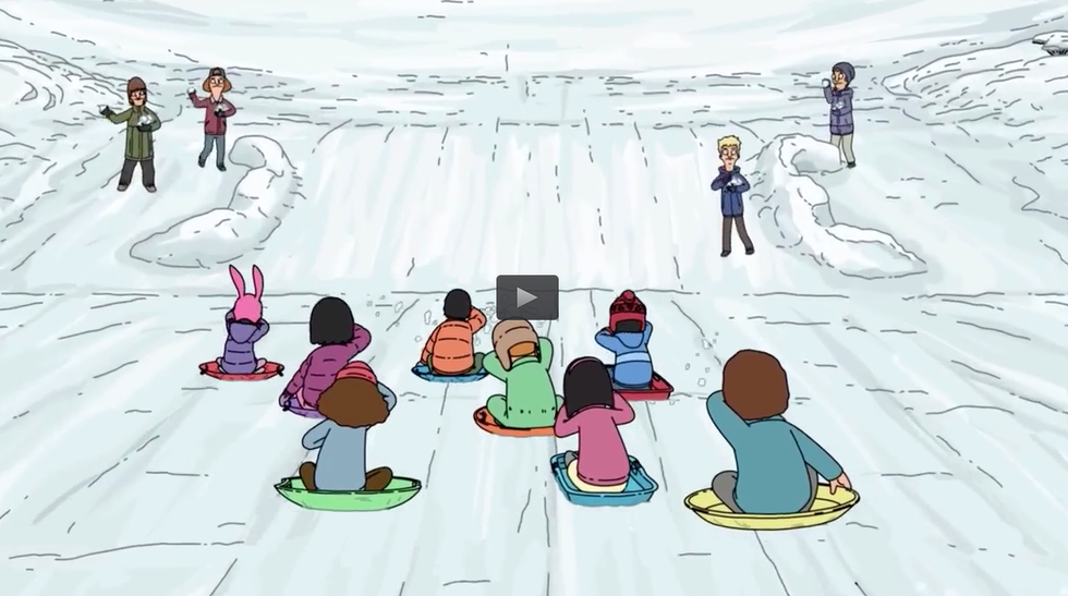 After record snowfall covers the town, the kids take the rare opportunity to go sledding. Halfway down a slope, Louise spots Logan and the other high school boys, and the kids get pelted with snowballs. Teddy tells Bob about his new snow plow gig and how it's a very big responsibility, but Bob isn't interested. The kids, along with regular-size Rudy recruit the help of Rudy's cousin, high school softball captain, to take down Logan and his friends. The kids can sled again, but not until Logan calls in the best 3-point shooter on the high school basketball team to fire back at Louise and the kids. Teddy is pressured into plowing the hill, per Louise's request, to keep everyone from enjoying the snow slope. It snows twice as much that night, it's as if the snow was never plowed, so the kids go sledding again. The snowball-war begins and ends with every female high school athlete joining the fight against Logan and his friends. Louise pities him and steps in at the last second to save him.