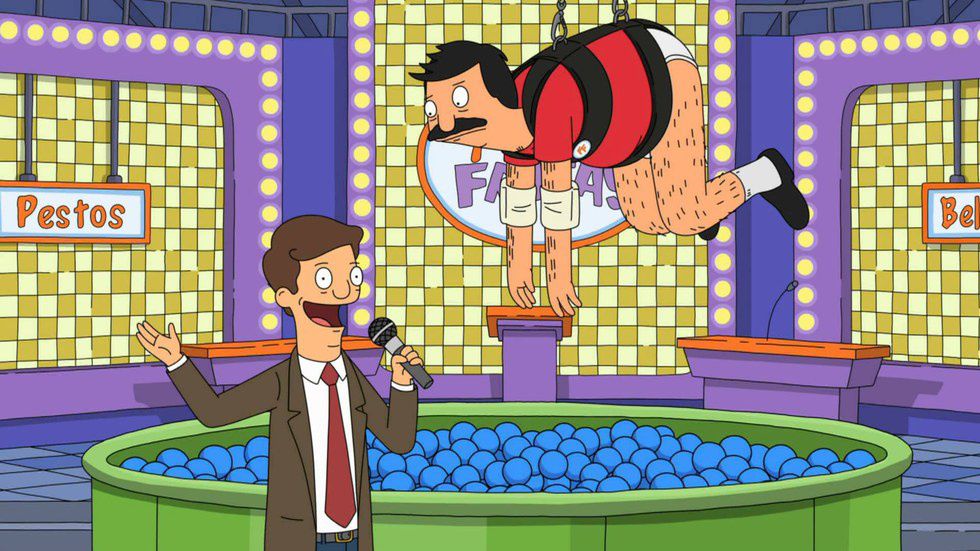 -In this episode, the Belcher's car breaks down on the way to the movies and they find a flyer for a showing of Family Fracas and while they are there they are cast for being on the show and they decide to be on it because the grand prize is a new mini van, at the end, the last family they compete against is the Pesto family, the Belcher's rival family (at least for Bob they are).