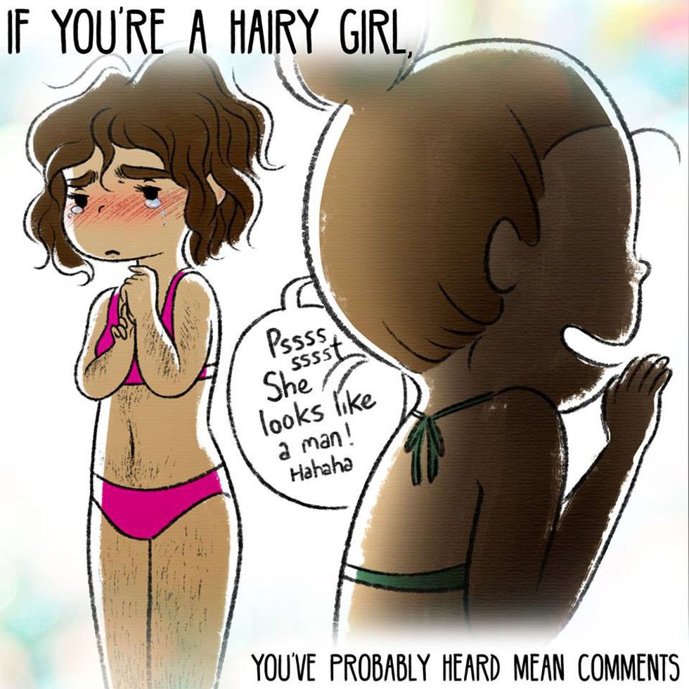 From the time I was a little girl, I have dealt with embarrassment from having a lot of thick, dark, body hair. In elementary school, I started getting long, thick hairs above my lip, and when I got into middle school, I grew a LOT of leg and armpit hair. As I got even older, more hair grew on my face, including my chin and the back of my cheeks. Who knows how many hours I’ve spent shaving, plucking, and waxing away this unwanted hair. But, I felt like I had no choice. If I didn’t maintain my look, I would feel disgusting and unwomanly. Girls weren’t supposed to look like this. Girls were supposed to be smooth and dainty looking, and this was not exactly me.