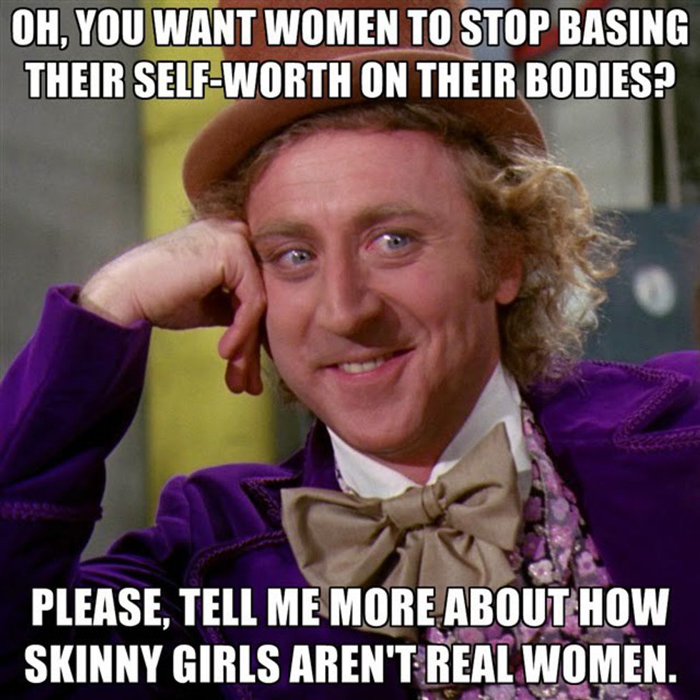 So "skinny" ladies: eat that dessert, go to the gym, wear that dress or those jeans, do whatever you want to because it is your God given right in the body that he gave you. Don't let anyone try to tell you that you shouldn't do something because you are small and skinny. Embrace the skinny.