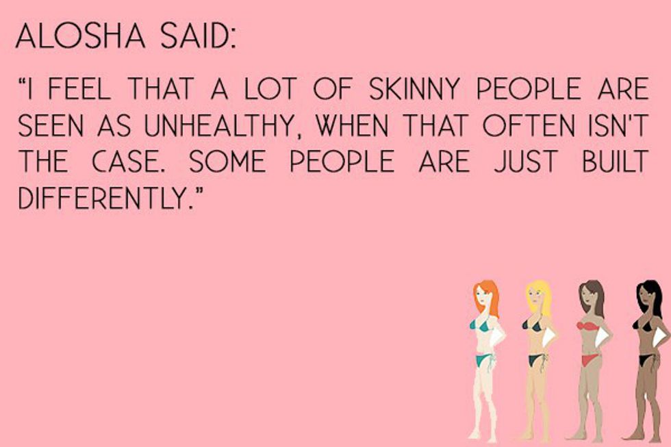 Now I'm not saying that skinny body shaming is the only one that matters. All body shaming matters, but this is the kind I have experienced and I know a lot of other girls have as well. Body shaming isn't just for girls with curves, it is all body types including skinny. So next time you start to criticize someone for being skinny just do us all a favor and keep your mouth shut. You may think you're giving us a compliment, but you are doing the absolute complete opposite.
