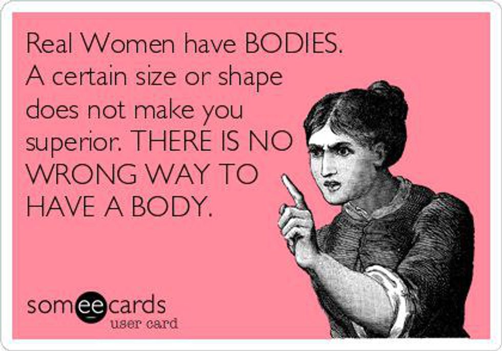 I do my best to ignore the fact that some people have this one-sided mindset, but sometimes it sneaks past my ability to brush it off as irrelevant. I recognize that the posts declaring, “Real women have curves,” are comebacks to the abundance of ads that display only thin women. Thankfully, some companies are beginning to use more of a variety of body types in their ads (it still needs some work, but we are headed in the right direction). Body size and shape is a sensitive subject for a majority of the human race. No matter your size, or how other people see you, there is still the underlying feeling of self-consciousness that most of us don’t like to admit.