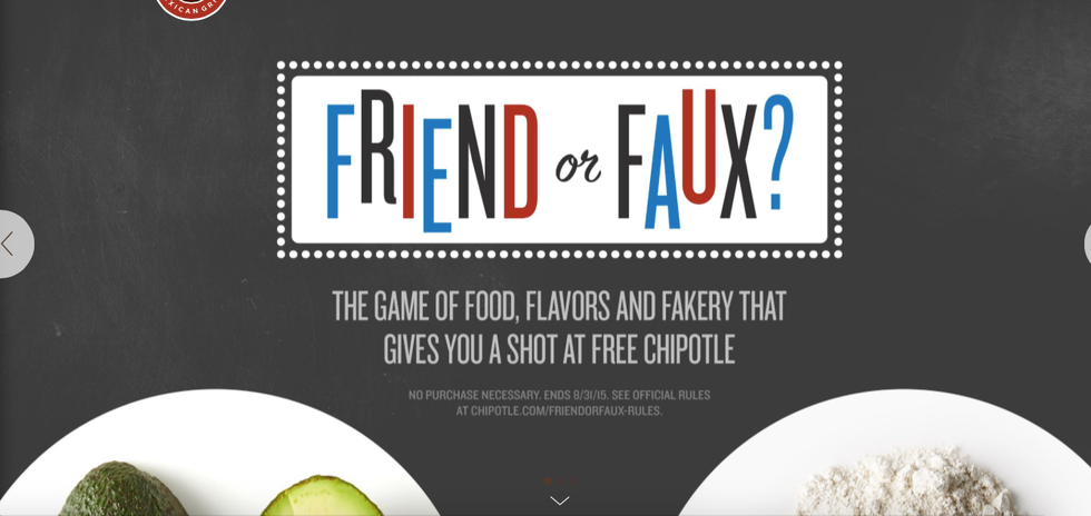 If you go to the Chipotle site, you can see their banner for the ‘Friend or Faux?’ competition.